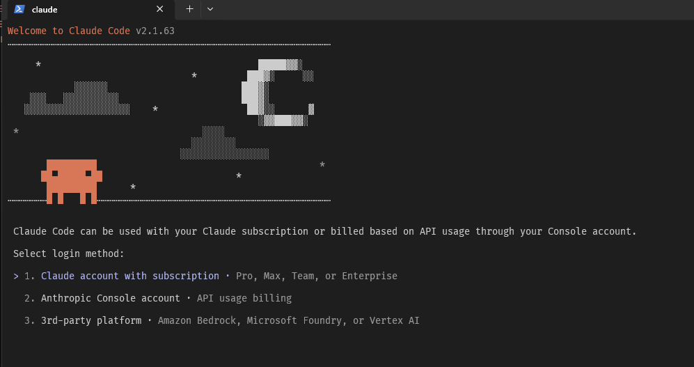 You will see the Claude Code welcome interface showing: